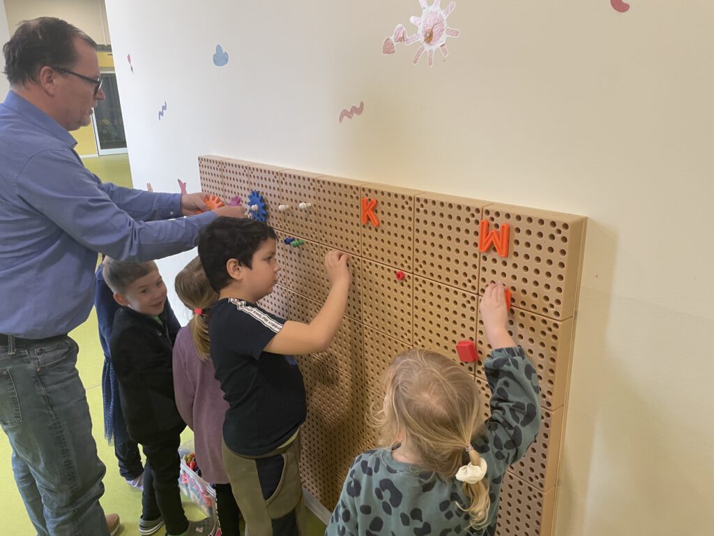Die neuen Konstruktionswände ergänzen die Ausstattung der Kitas und bieten den Kindern vielfältige Möglichkeiten zum kreativen Bauen, Forschen und Entdecken. „Die Konstruktionswände stehen für Neugier, Teamgeist und Kreativität – Werte, die wir in der frühkindlichen Bildung unserer Kitas fördern möchten“, betonte der 1. Beigeordnete weiter.