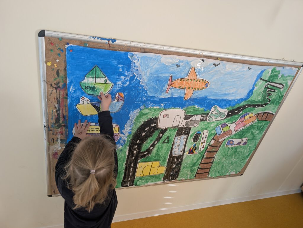 – Zusammen gestalteten wir ein großes Plakat mit all den gemalten Fahrzeugen und Reisewegen.
